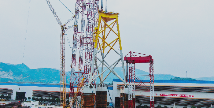 長(zhǎng)樂(lè)外海海上風(fēng)電場(chǎng)C區(qū)項(xiàng)目位于福州市長(zhǎng)樂(lè)區(qū)東部海域、閩江口南岸,場(chǎng)址距離長(zhǎng) 樂(lè)海岸線31千米~50千米海域,平均水深37米~45 米。福建船政承接該項(xiàng)目25套吸 力式導(dǎo)管架制作工程,其中單套三筒導(dǎo)管架高度近百米,底部最大尺寸超40米,單套導(dǎo)管 架最大重量約1200噸。